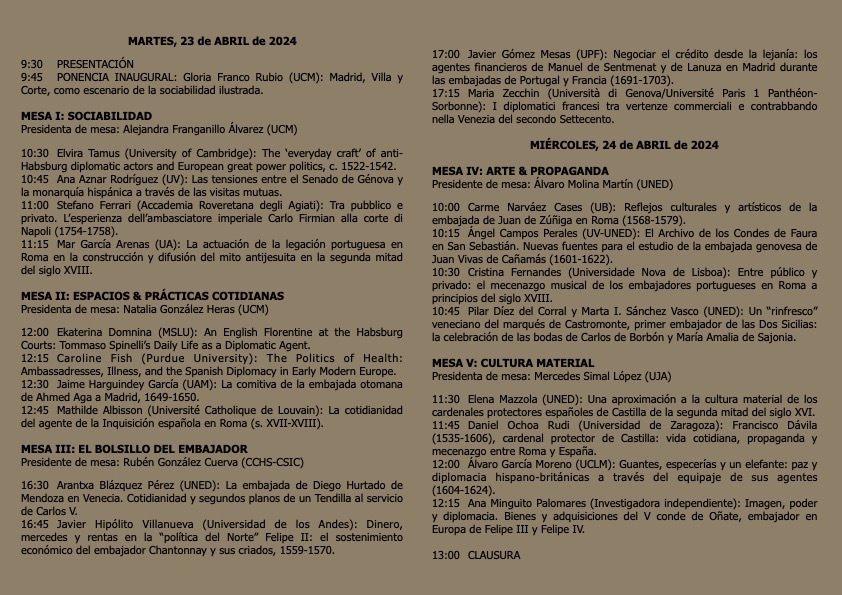 II Seminario Internacional “Corte y Diplomacia” Entre Público y Privado. La Cotidianidad de los Agentes Diplomáticos en las Cortes Europeas (ss. XVI-XVIII), Universidad Autónoma de Madrid, April 23-24, 2024